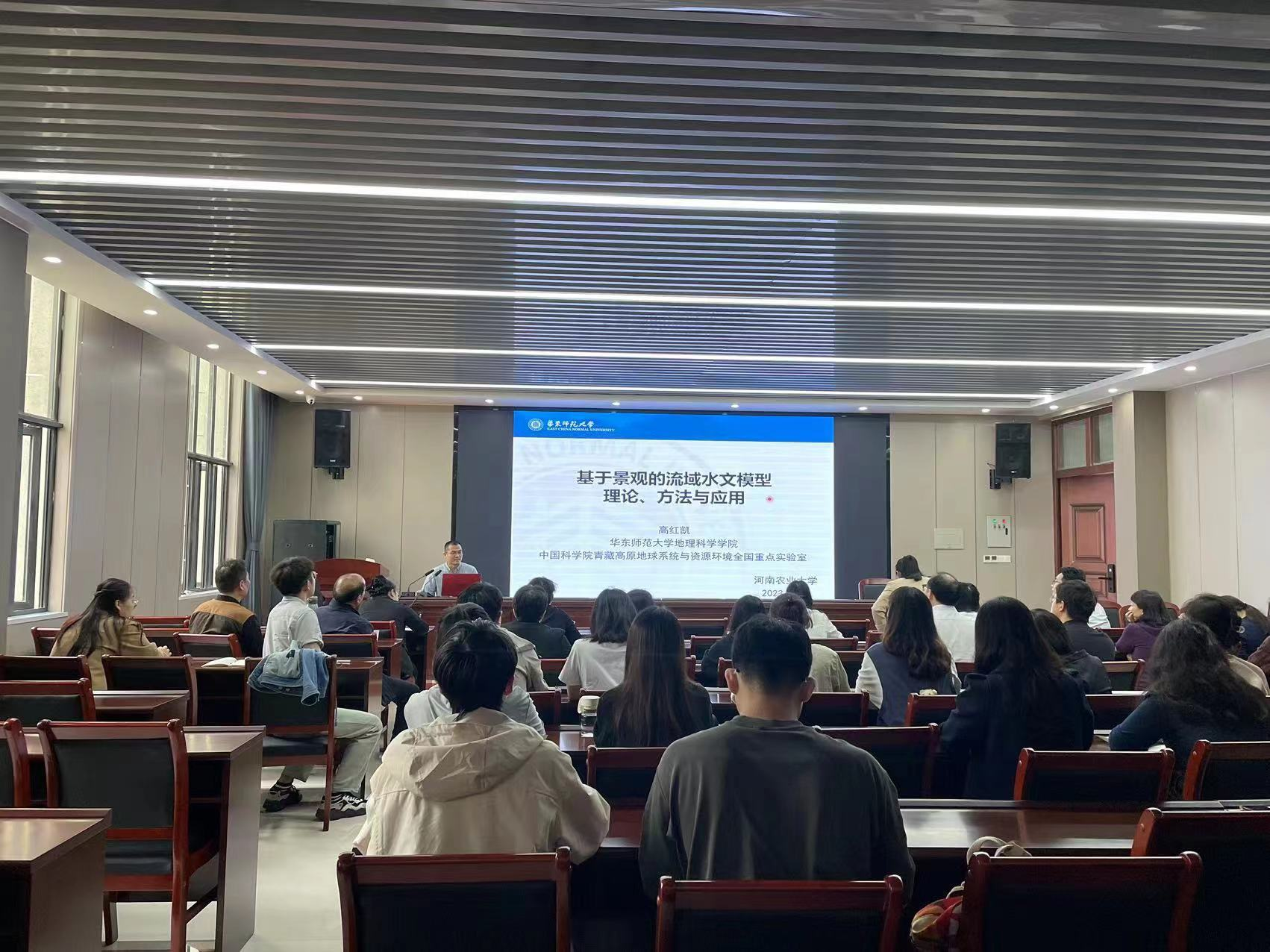 高红凯教授在第一部分以“基于景观的流域水文模型:理论、方法与应用”为题,重点介绍了团队自主研发的“最优根区理论模型”,接着高教授介绍了自己主持的四个基金申请经验,尤其是详细阐述了基金申请各部分的注意事项,以及科研成果凝练成基金申请的思路过程。在专题报告结束以后,高红凯教授与av解说 师生对模型构建与应用、基金申请等问题进行了深入交流。