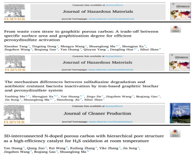 环境监测与污染控制科技创新团队在生物炭用于抗生素降解、抗生素抗性细菌(ARB)失活及持久脱硫方面取得研究进展,相关研究成功发表于环境科学与生态学领域著名期刊《Journal of Hazardous Materials》(SCI一区,影响因子13.6)及《Journal of Cleaner Production》(SCI一区,影响因子11.1)。