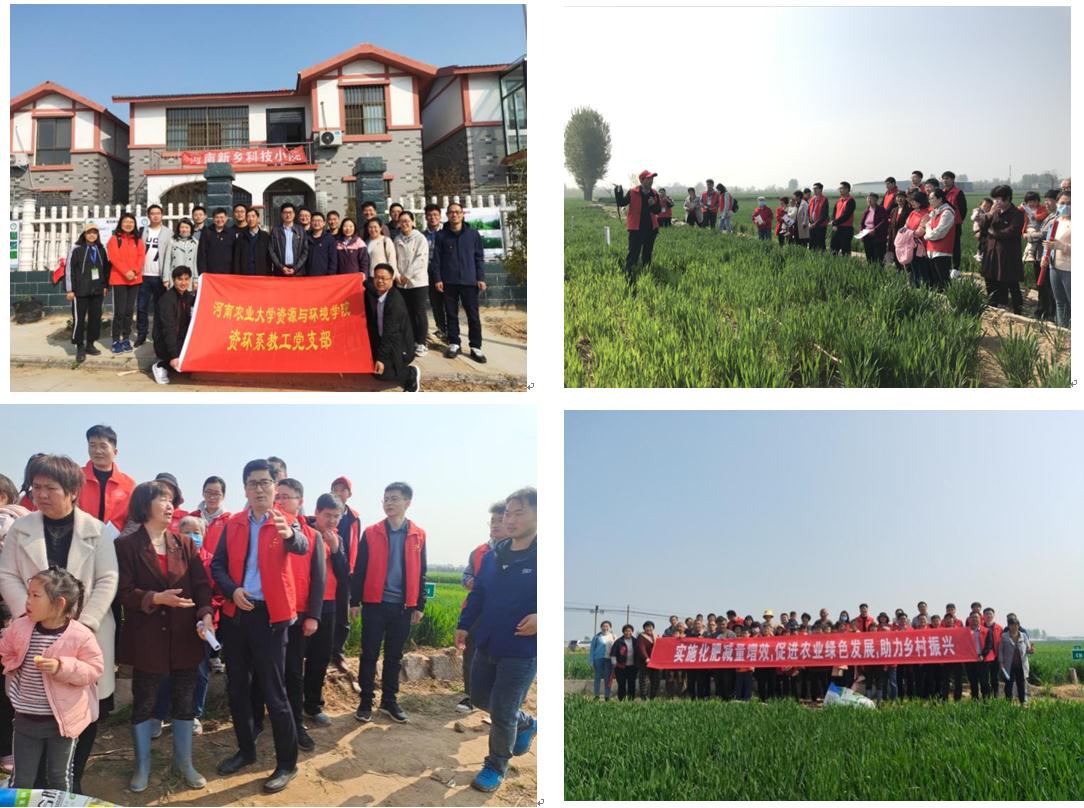 上午,教工党员首先来到av解说 新乡科技小院,与驻院研究生和帮扶农户进行沟通座谈,了解研究生学习生活状况及所开展科技助农活动,帮扶解决农户目前作物种植遇到的问题和困难。在小院驻地,支部书记刘红恩教授对周边农户小麦、大蒜和蔬菜种植中遇到的施肥技术和土壤障碍等问题进行了现场答疑解惑。在小麦田间现场,叶优良教授对当地种植大户进行了小麦绿色科学施肥和“一喷三防”技术培训。幽默的语言和通俗易懂的讲解赢得了大家的阵阵掌声。“爱农大”、“新型农民”、“减肥增效”、“粮食高产”是培训现场农户不时大声高喊的词语。
