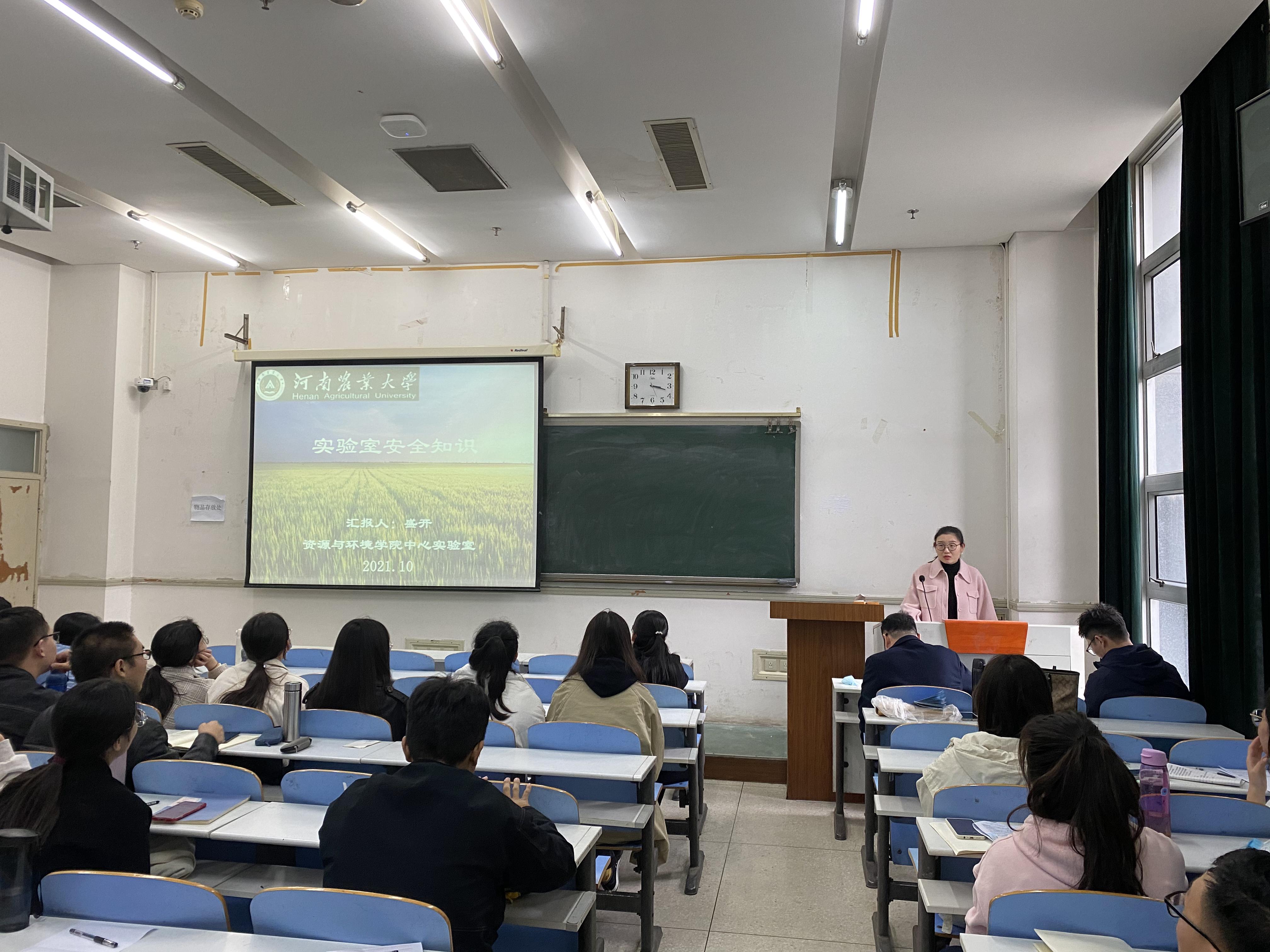 作为研究生新生入学教育的一部分,10月19日下午,av解说 在工程楼107举行实验室安全培训会。培训由资源环境系副主任马双龙老师主持,实验室副主任秦世玉、实验员盛开老师主讲,全体2021级研究生参加了培训。