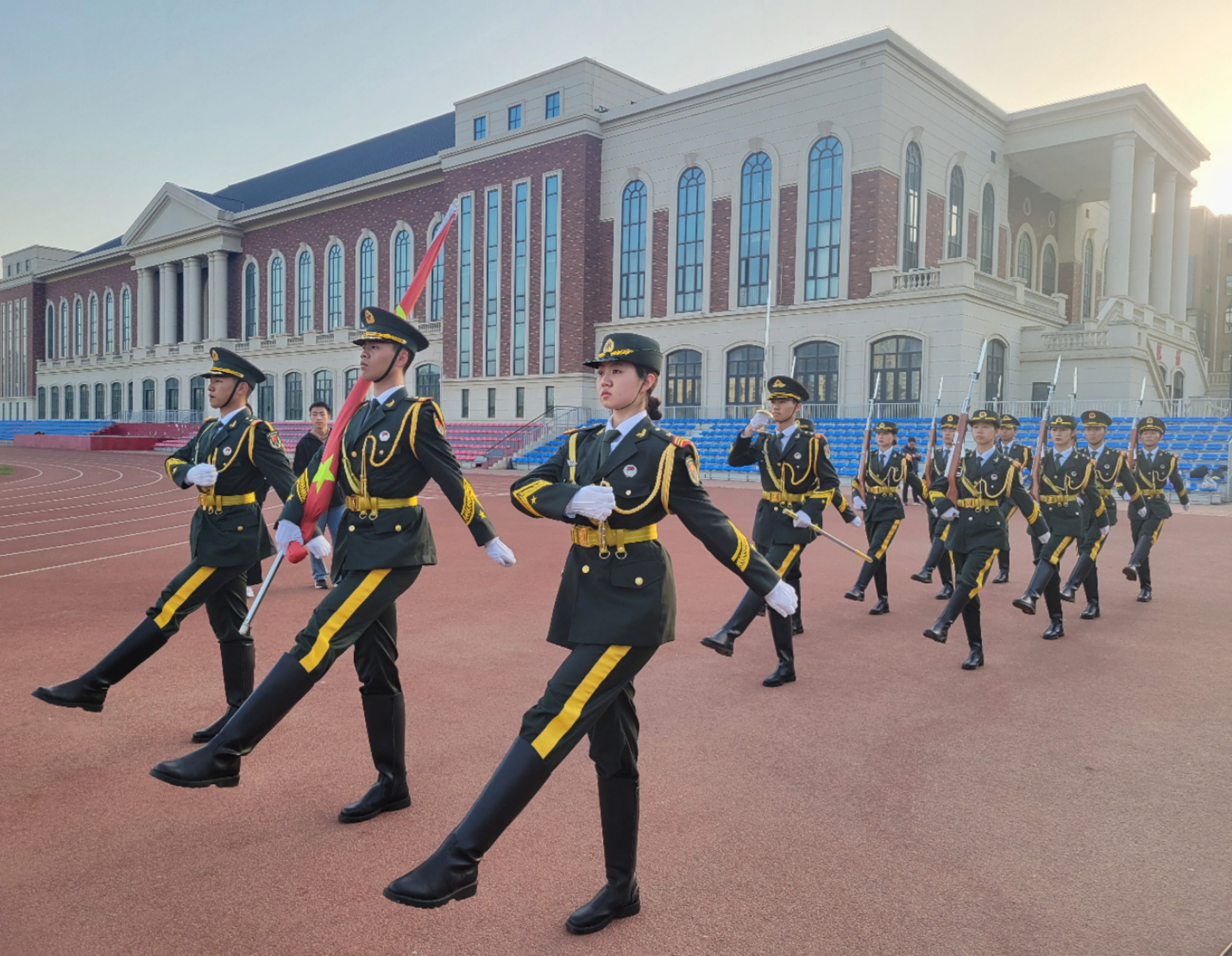 升旗仪式开始,国旗护卫队身着戎装,手持礼宾枪,护送五星红旗进场。伴随着庄严的国歌,全院师生庄严肃立,注视着五星红旗冉冉升起。在国旗下,军训教官赵文迪、参训学员许竞航依次发言,表示军训期间将严格要求自己,增强纪律观念,不折不扣完成各项军训任务。最后,院党委书记李国权总结讲话,希望同学们孜孜以求厚植家国情怀、源源不断汲取奋斗力量、环环相扣培养创新能力、兢兢业业担当青春之责,以实际行动展现新时代青年学子的责任和担当!