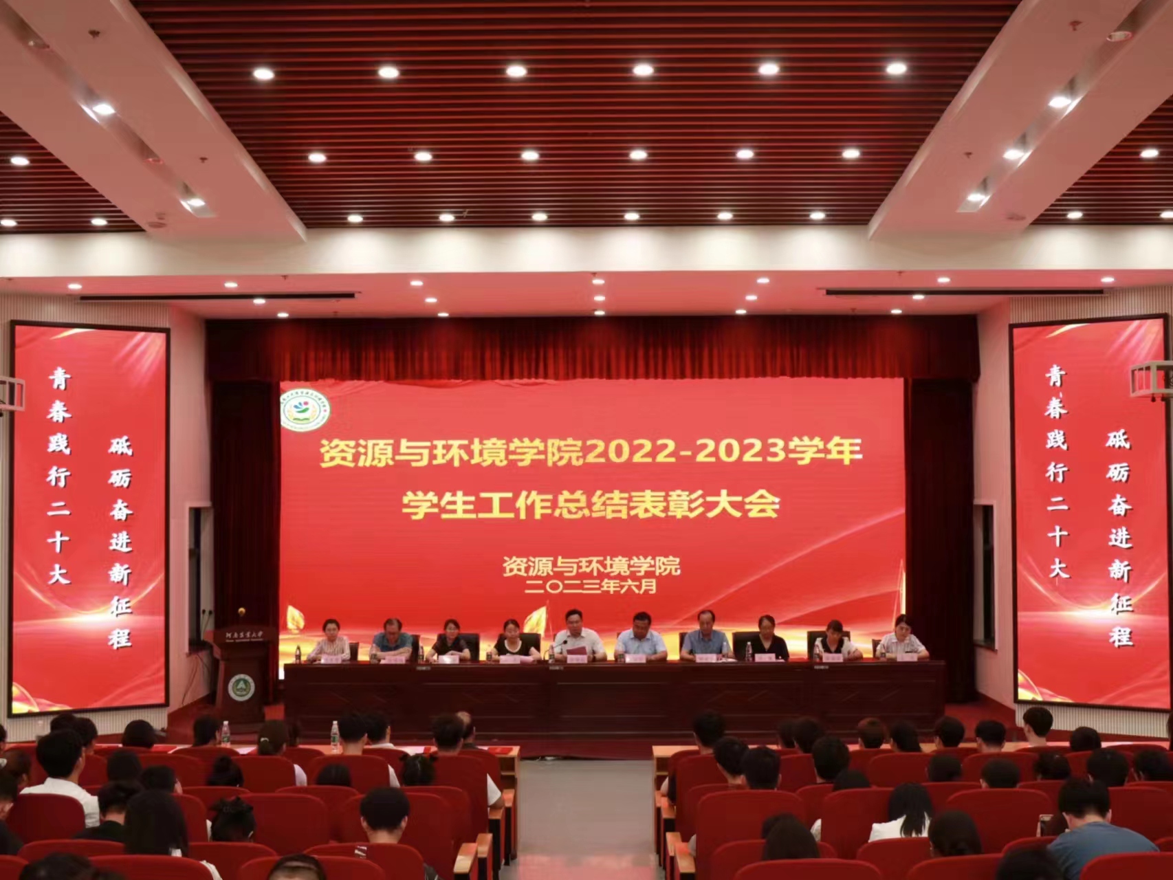 在龙子湖校区举行2022-2023学年学生工作总结表彰大会。学院党委书记李国权,院长王宜伦,副院长杨璟、刘世亮、李玲,土地资源管理系主任陈伟强,人文地理与城乡规划系主任张亚丽,植物营养系主任李慧,土壤环境系副主任张雯雯,学院团委书记王岚,及获奖师生代表参会。大会由杨璟主持。