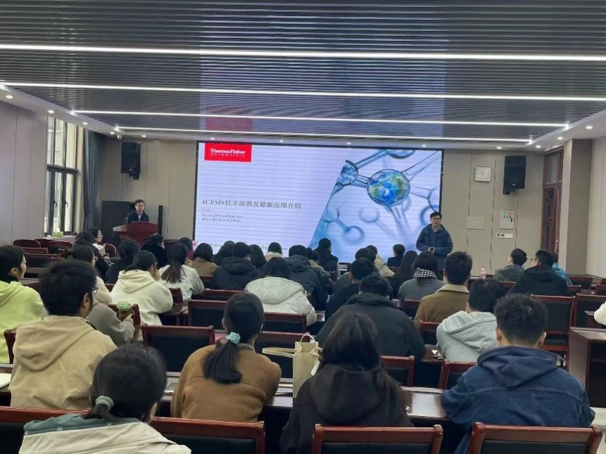 大型仪器共享平台运行情况,并介绍了大型仪器培训对提升仪器管理人员和广大师生仪器操作水平的重要性。随后,赛默飞世尔应用工程师深入讲解了ICP-MS的基本原理、检测器的基本结构、样品适用范围及前处理方法、操作应用以及实验室注意事项,并介绍了仪器在食品、环境、农业及动物医学等领域中元素总量分析、形态分析、单颗粒、单细胞分析方面的最新应用案例。最后,叶润工程师为参会的师生们答疑解惑,耐心讲解了仪器日常使用中出现的灵敏度差、稳定性差、软件及实验数据异常等问题,并给出了相应解决办法。通过与工程师的交流探讨,师生对于仪器的操作和应用有了更深层次的了解,强化了ICP-MS的使用技能。