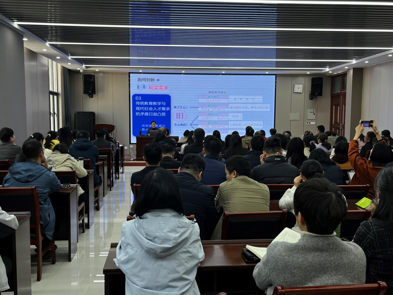 为持续提高本科教育教学质量,进一步提升教师教学创新大赛参赛水平,2024年3月20日上午,由我校教务处主办、av解说 承办的2024年第一期教师沙龙活动在力行楼中-338报告厅开展。首批国家级一流课程负责人、河南省课程思政样板课负责人、河南省研究性教学示范课程负责人、河南省教学标兵、河南大学新闻与传播学院冯媛媛副教授应av解说 邀请,作了题为“以学生为中心,唤醒、赋能、成长、成才——关于教学创新及创新大赛的思考”的报告,我校教务处相关领导和130余名教师参加了此次教师沙龙,活动由副院长李玲主持。