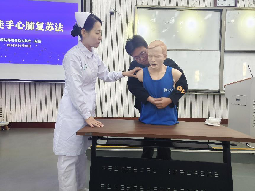 为提升师生的健康意识,科普急救医学知识,10月22日下午,av解说 于龙子湖校区繁塔楼BC座大教室四开展急救知识培训活动。郑州大学第一附属医院感染科疾病科和日间手术部的医护人员们以及av解说 师生代表参加活动。