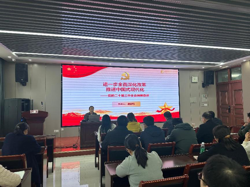 宣讲会上,魏老师围绕党的二十届三中全会召开盛况、深入学习领会习近平总书记在党的二十届三中全会上的重要讲话精神、全面准确理解《决定》提出的进一步全面深化改革重大举措、以钉钉子精神抓好改革落实四个方面,进行了深入浅出的阐述。同时,魏老师结合当前国内外形势和我校的发展实际,鼓励师生们要把思想和行动相统一,立足本职岗位,积极投身到全面深化改革的伟大实践中去。整场报告内容全面系统、脉络清晰,与会师生纷纷表示本次学习受益匪浅。