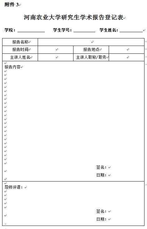 请相关研究生做好前期准备工作,将《研究生学术报告审查表》(附件2)于本学期第一次报告会时统一交至吴名宇老师处。在本人报告会后,将《av解说 研究生学术报告登记表》(附件3)交至吴名宇老师处汇总。