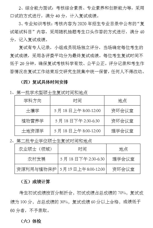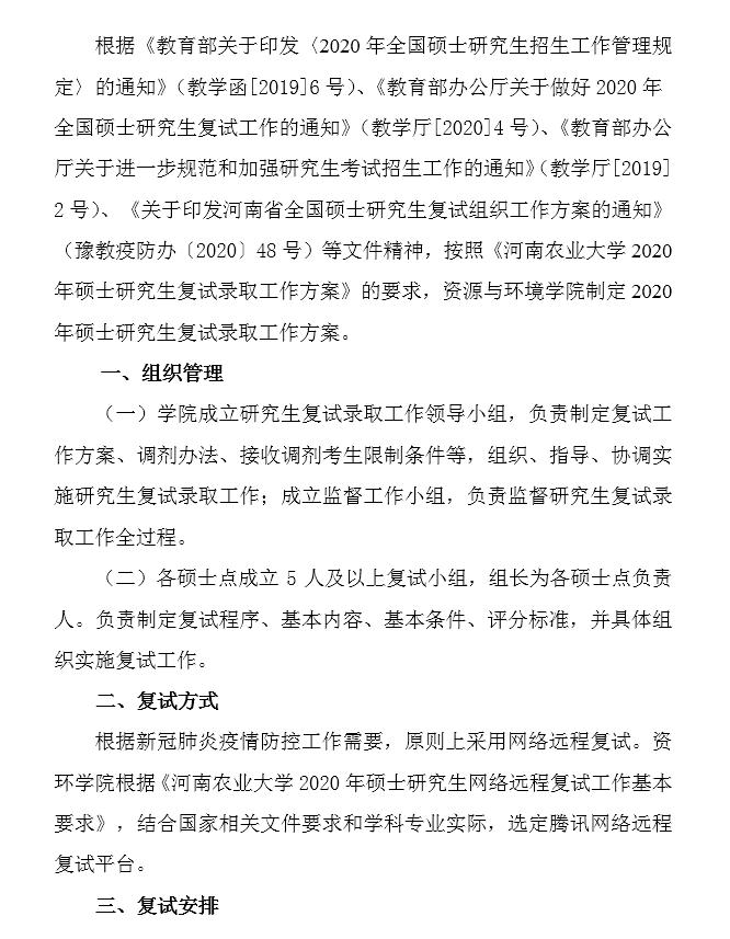 av解说 资环学院 2020年硕士研究生复试录取工作方案