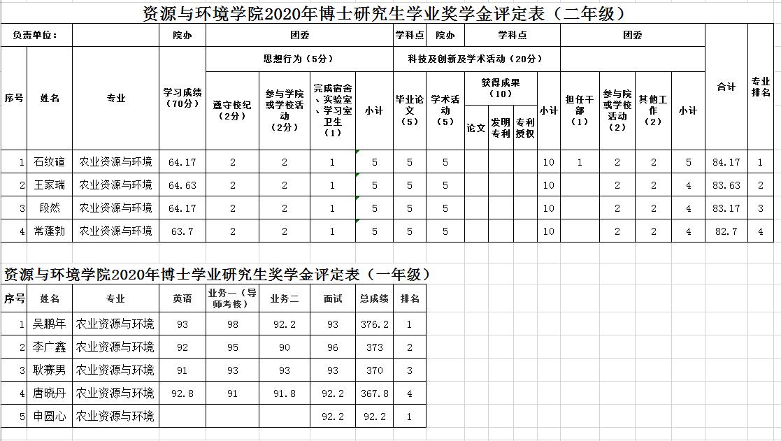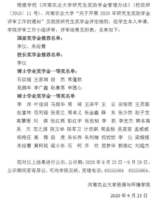av解说 2020年硕士研究生国家奖学金、校长奖学金、博士学业奖学金、硕士学业奖学金 评审结果公示