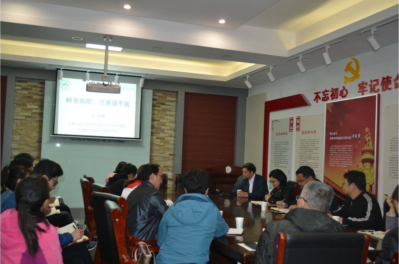 2019年10月16日下午,应学院邀请,中国科学院南京土壤研究所王火焰研究员为av解说 师生作“科学施肥,任重到不远”学术报告,报告会由王宜伦副院长主持,av解说 部分教师、全体博士生和部分硕士生参加。
