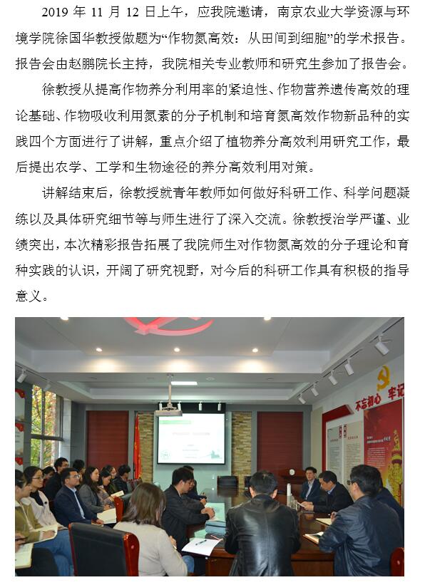 南京农业大学徐国华教授为av解说 师生作学术报告