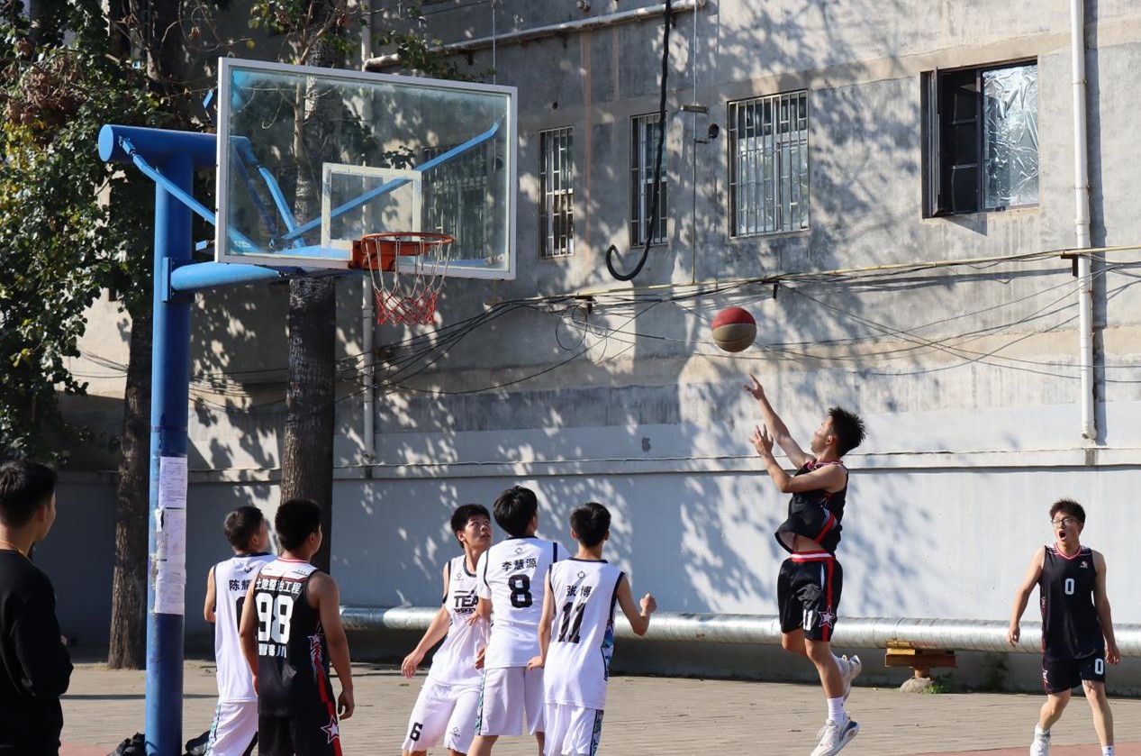 于文化路校区篮球场成功举办“绘梦绚烂青春,迎‘篮’奋勇向上”2023级新生篮球赛。