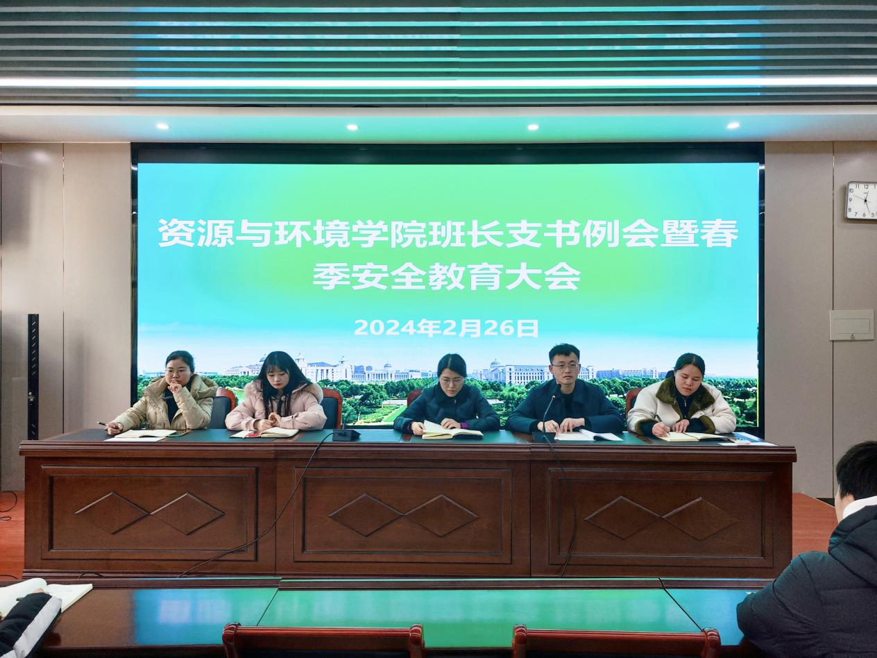 于2月26日在力行楼338会议室召开新学期班长支书例会暨春季安全教育大会。院团委书记王岚、党委组织员胡明阳、团委副书记黄春萌、团委老师王梦茹、郑凤君,及各班班长支书、院学生会主席团参加会议。