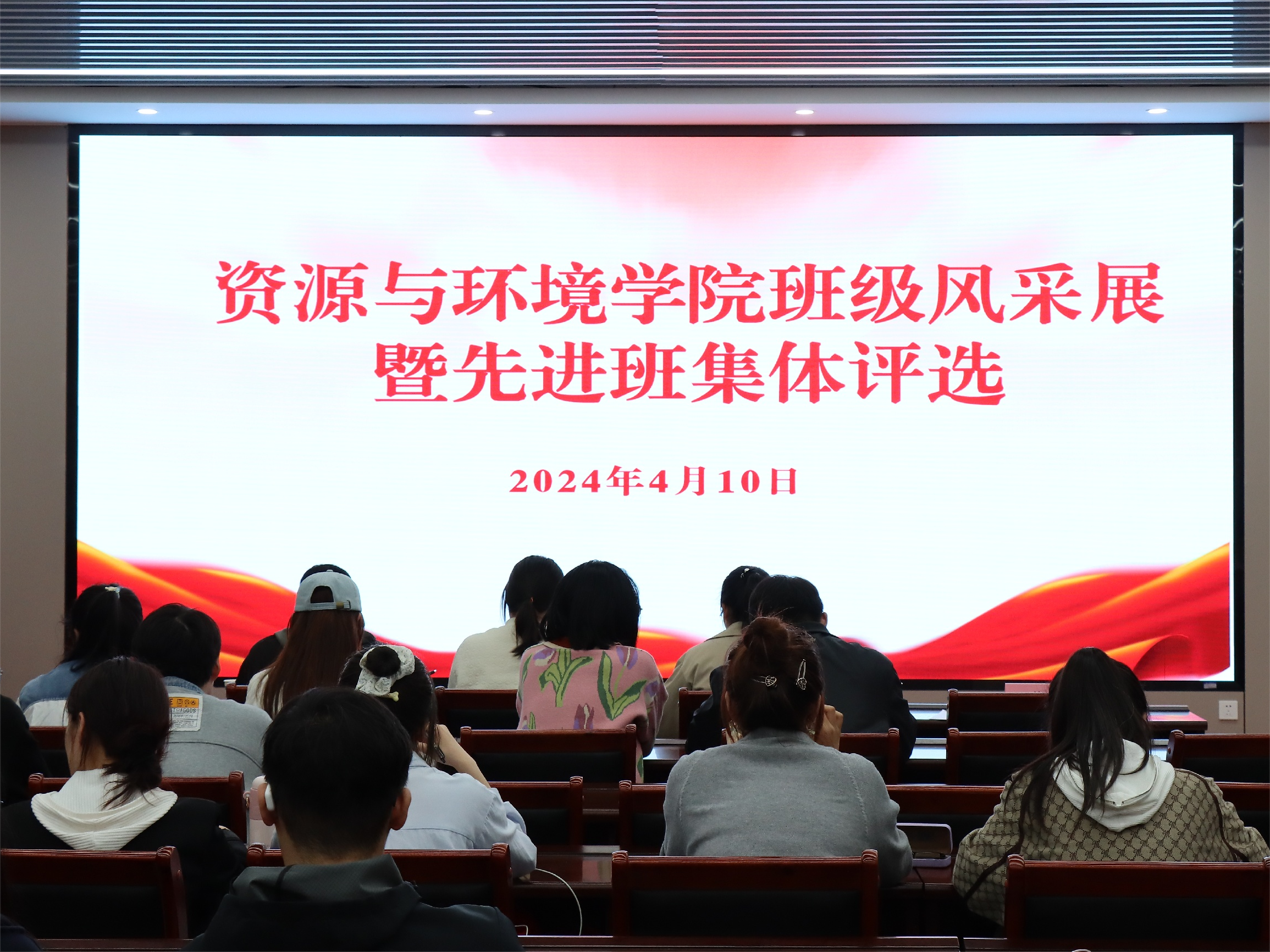 举行2024年班级风采展暨先进集体评选大会。院团委副书记黄春萌,团委老师邓晓铮、郑凤君、史新杰担任评委,共24个班级参与评选。