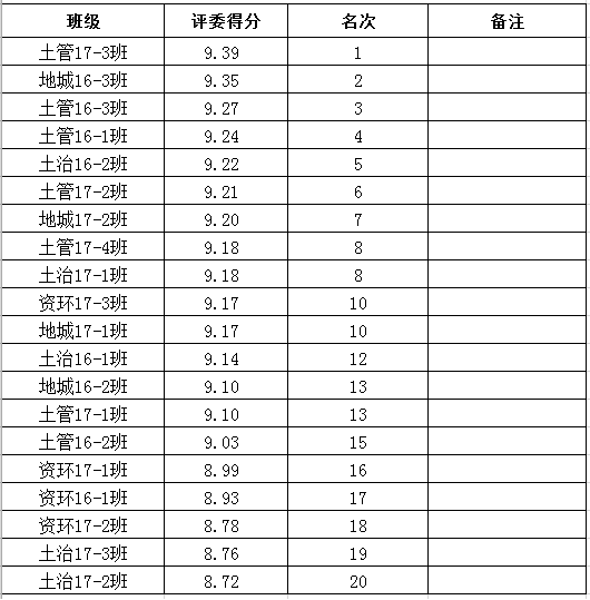 为充分发挥先进集体的示范引领作用,增强广大学生的集体荣誉感。由各班级向学院提出申请,在先进集体评选大会上进行PPT 展示,经学院评委打分,现将各班级先进集体评选现场得分排名如下: