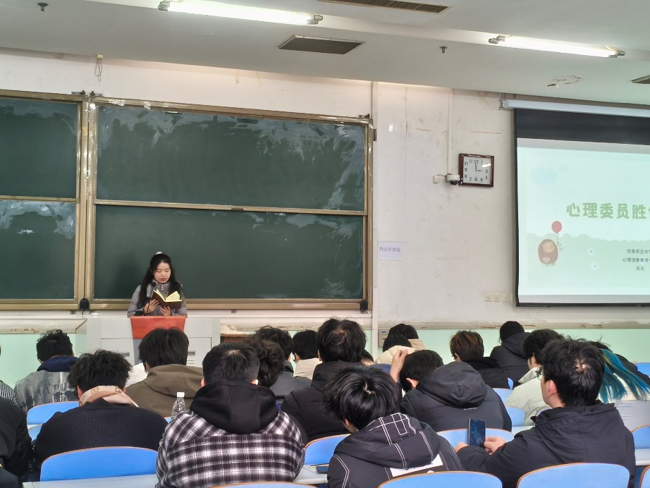 联合理学院、文法学院于3月4日在工程楼101召开春季心理委员培训会,由心理健康教育中心关元老师主讲。