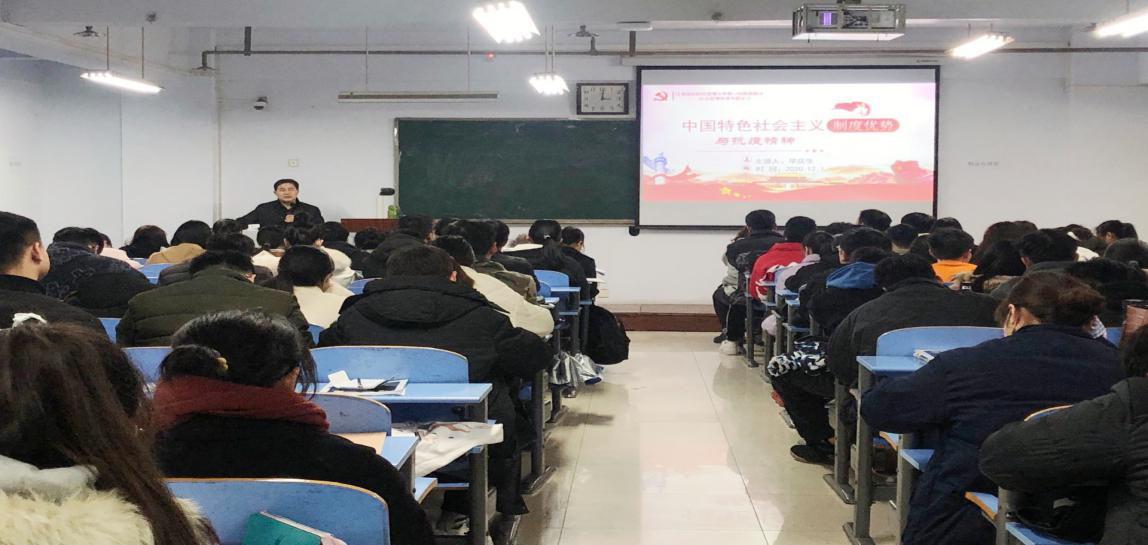 毕书记以“中国特色社会主义制度优势与抗疫精神”为主题,从中国特色社会主义制度的内涵、形成、优势以及制度优势在抗疫斗争中的彰显四个方面,从历史、思想、成果等不同维度,对中国特色社会主义制度进行了全方位阐释。毕书记指出,纵观新中国成立70多年的发展历程,社会主义制度所具有的优越性无可置疑。新冠病毒来势汹汹,但在我国社会主义制度的特有优势下,中国人民打赢了这次疫情防控阻击战。疫情防控的成功,更加彰显了党的集中统一领导、坚持人民主体地位和强大社会动员能力等制度优势。