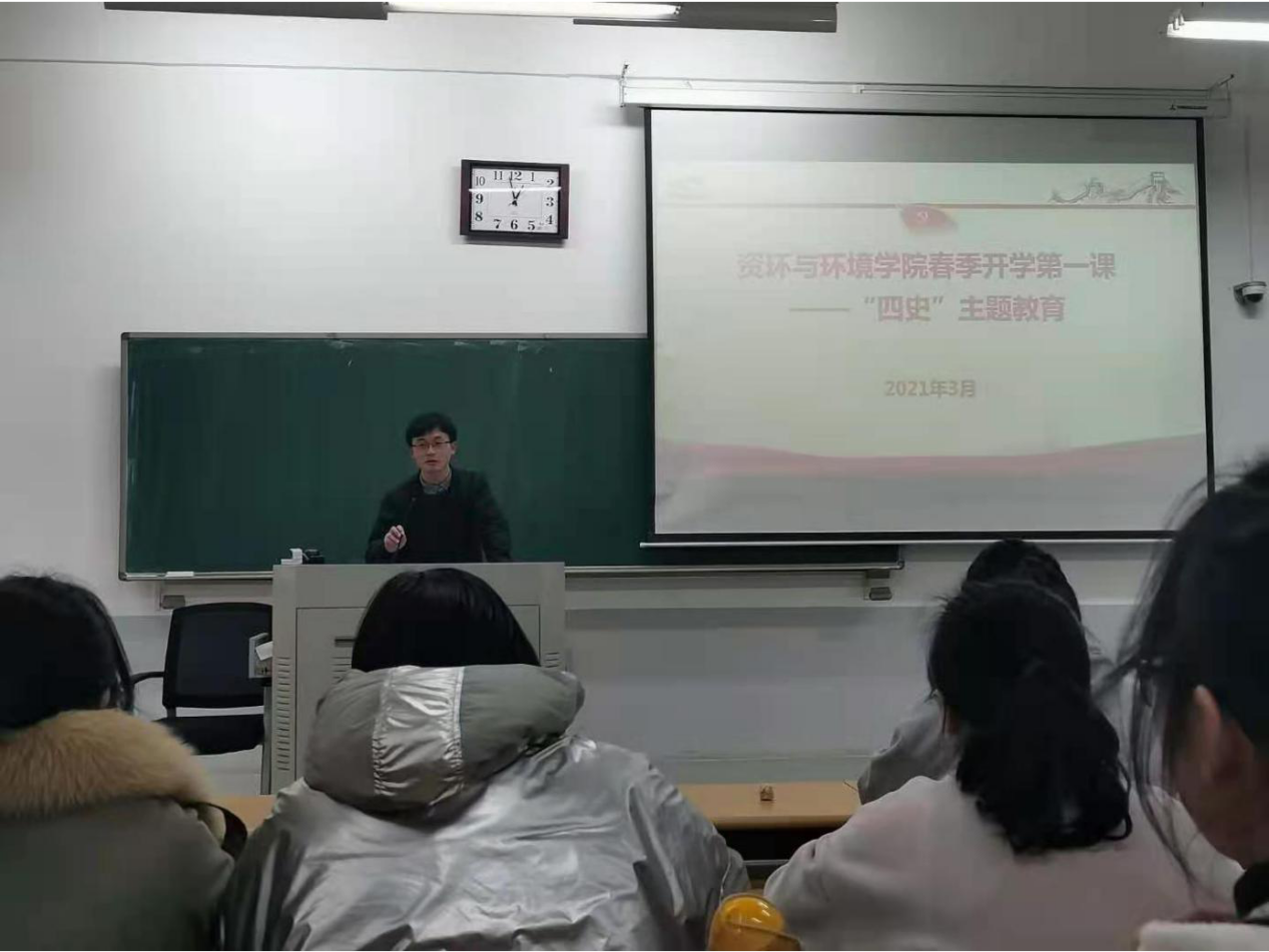 为做好新学期学生的思想引领和政治教育,增强同学们对党史、新中国史、改革开放史和社会主义发展史的了解,引导学生在学思践悟中坚定理想信念,在奋发有为中践行初心使命,av解说 于3月16日在龙子湖校区举行2021年春季开学第一课。本次“第一课”由团委老师胡明阳主讲,学院2020级学生参加了此次活动。